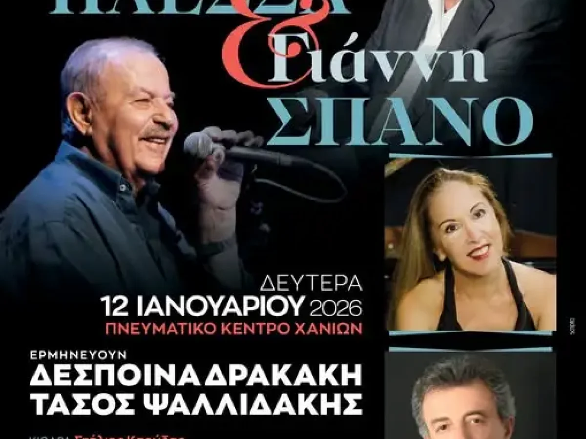 Μια Μουσική Βραδιά αφιερωμένη στον Μίμη Πλέσσα και τον Γιάννη Σπανό θα παρουσιάσει το Μουσικό Σύνολο Χανίων, τη Δευτέρα 12 Ιανουαρίου 2026, ώρα 9.30 μ.μ., στο Πνευματικό Κέντρο Χανίων.